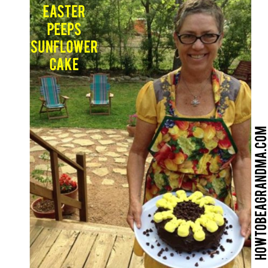 - For petals, arrange Peeps around edge of cake, curving slightly and being careful not to separate chicks. For sunflower seeds, arrange chocolate chips in center of cake. Yield: 12 servings.